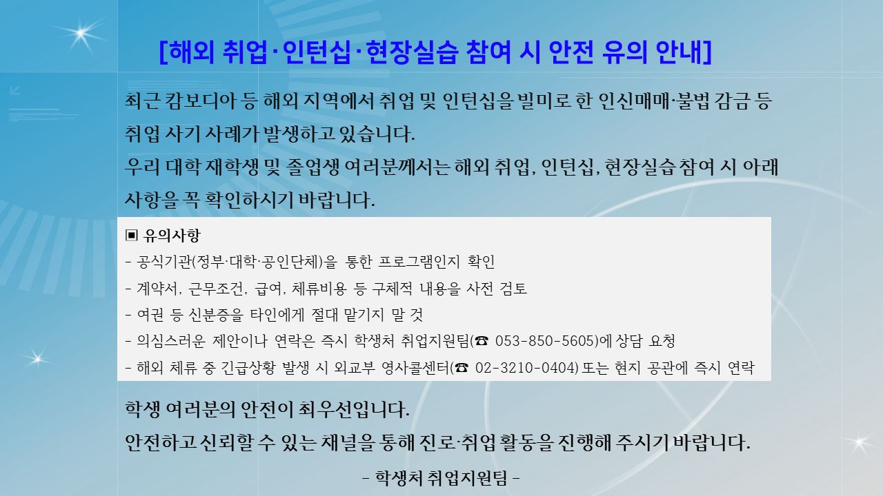 해외 취업/인턴십/현장실습 참여 시 안전 유의 안내